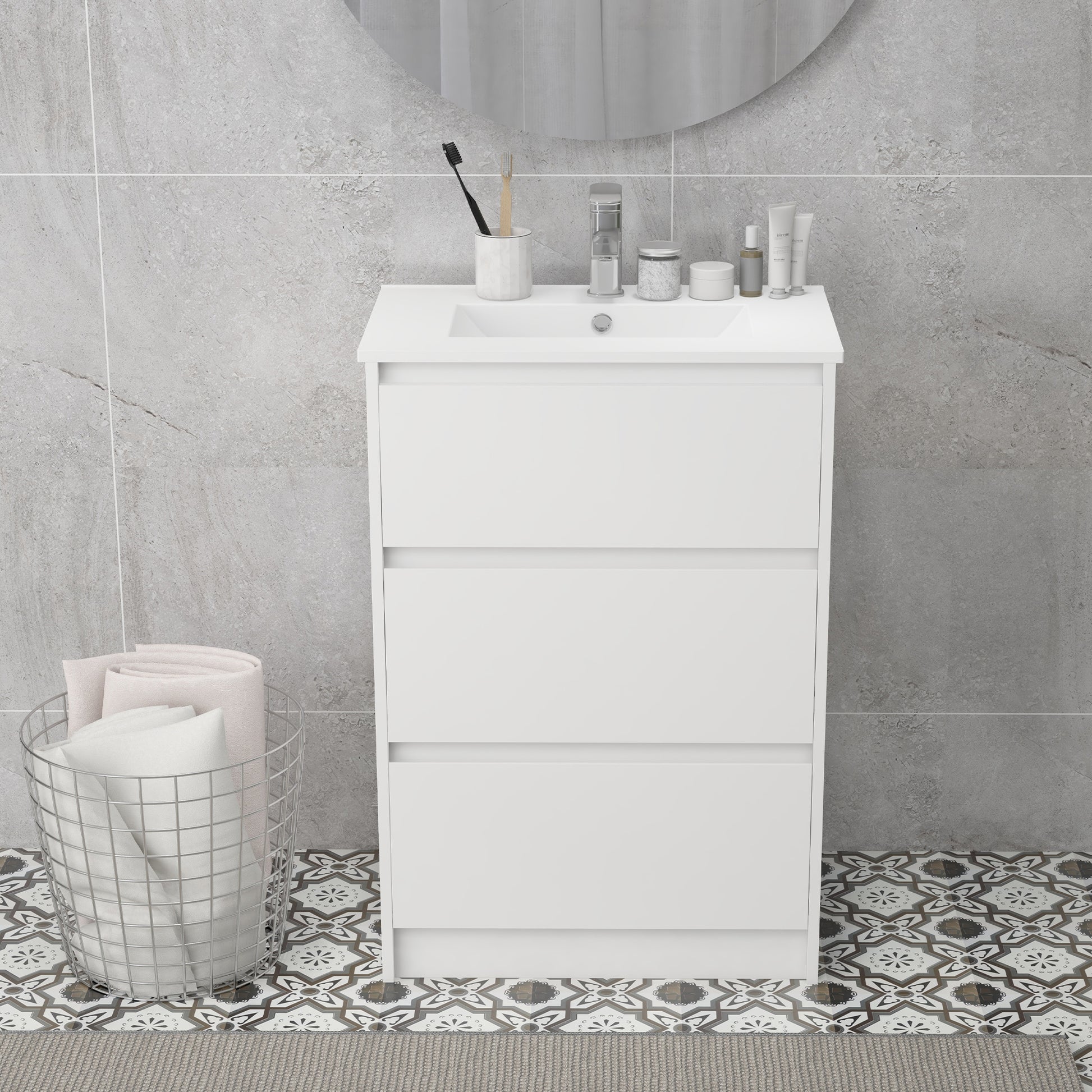 - Weight Capacity: 46kg(total), 40kg(basin), 3kg(each drawer)