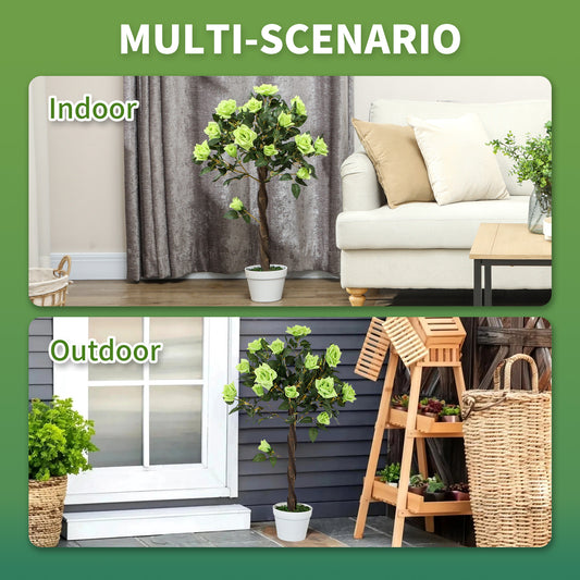Set of 2 90cm Artificial Rose Tree, Fake Decorative Plant, Green
