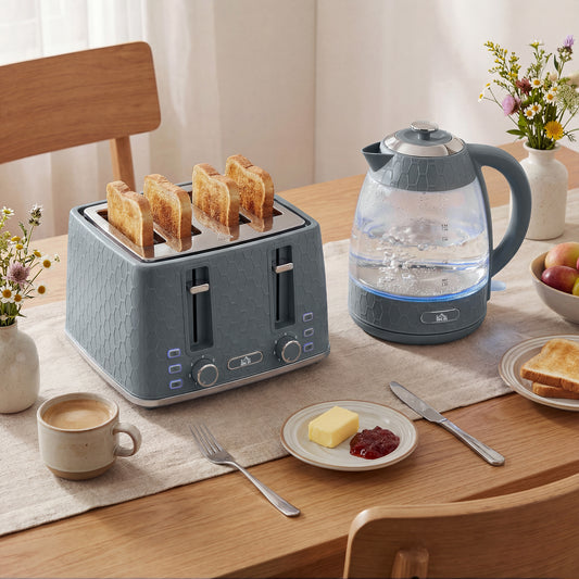 Kettle and Toaster Set with 3000W Rapid Boil, 4 Slice Toaster, Grey