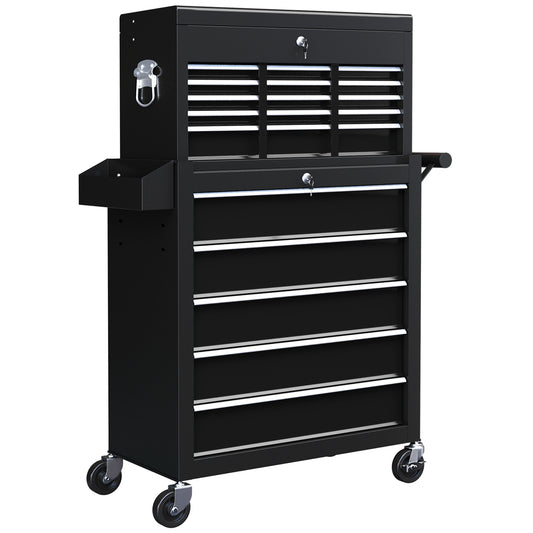 Rolling Tool Chest Lockable Roller Cabinet with with 14 Drawers Black