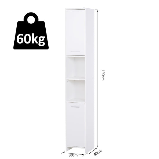Slim Bathroom Tall Cabinet, High Floor Cabinet Unit for Bathroom, Freestanding Storage Cabinet with 2 Doors and Adjustable Shelves, White