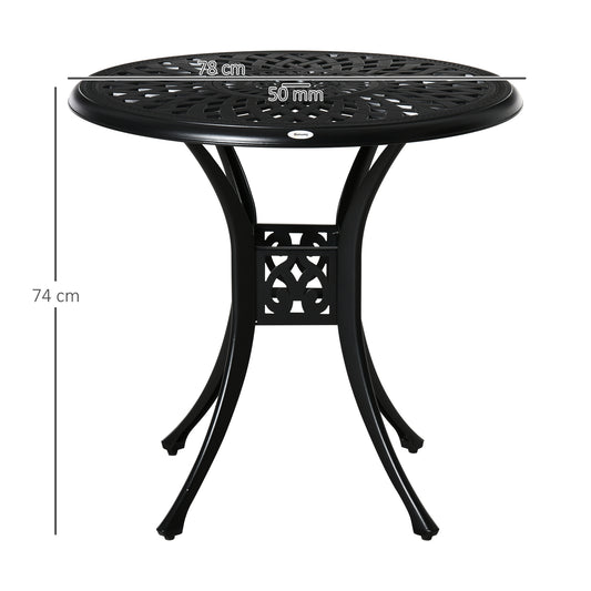 Outsunny 78cm Round Garden Dining Table Bistro Set with Parasol Hole Antique Cast Aluminium Outdoor Table Only, Black