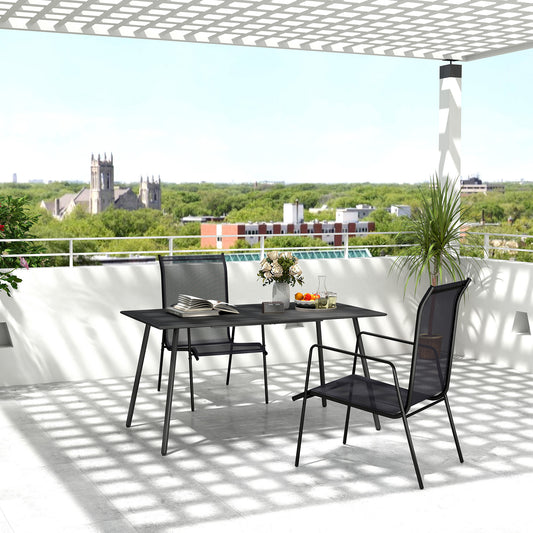 Garden Table for 4 Person with Slat Top, Steel Frame, Black