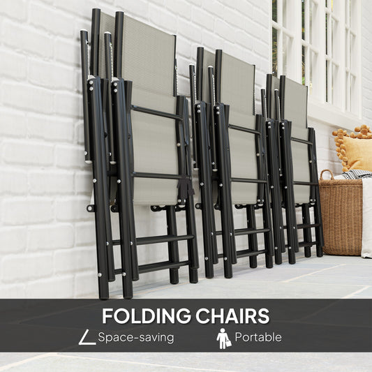 7 PCs Garden Dining Set, Folding Chairs and Metal Top Table, Grey