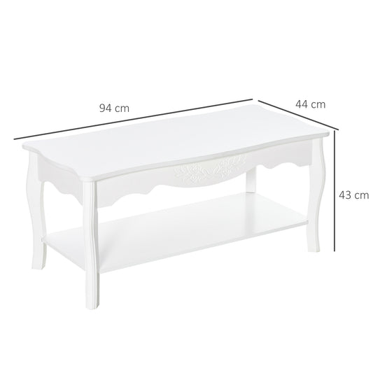 Modern Coffee Tables for Living Room w/ Storage Shelves, White