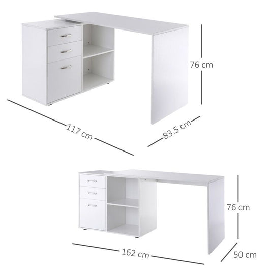 Computer Desk Table Workstation Home Office L Shape Drawer Shelf File Cabinet White