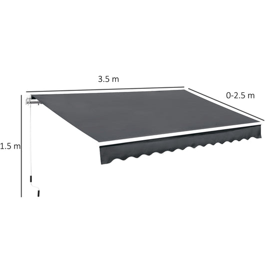 3.5M x 2.5M Manual Awning Canopy Retractable Sun Shade Shelter for Garden Patio