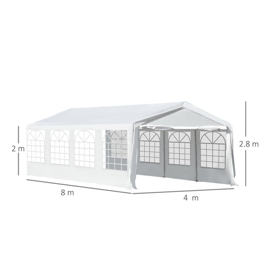 Outsunny 8 x 4m Galvanised Party Tent, Marquee Gazebo with Sides, Eight Windows and Double Doors, for Parties, Wedding and Events