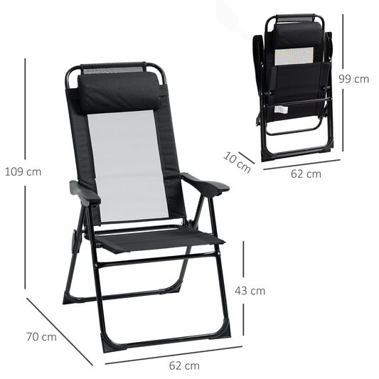 Outsunny Set of 2 Portable Folding Recliner Metal Outdoor Patio Chaise Lounge Chairs with Adjustable Backrest, Black