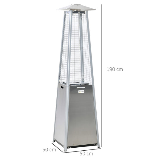 11.2KW Outdoor Patio Gas Heater Stainless Steel Pyramid Propane Heater Garden Freestanding Tower Heater with Wheels, Dust Cover, Silver