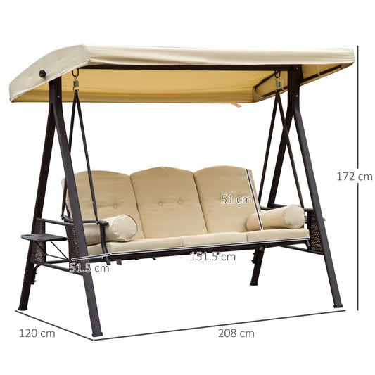 Steel Swing Chair Hammock Garden 3 Seater Canopy Cushion Shelter Outdoor Bench Beige