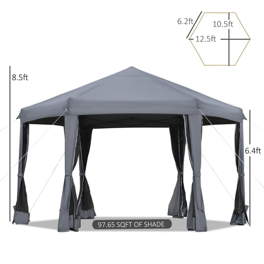 3.2m Pop Up Gazebo Hexagonal Canopy Tent Outdoor Sun Protection with Mesh Sidewalls, Handy Bag, Grey