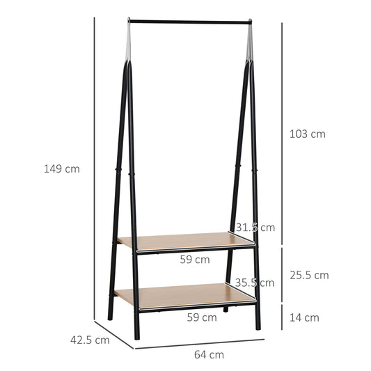 Clothes Rail, Freestanding Metal Clothes Rack with 2 Tier Storage Shelves for Bedroom and Entryway, 64 x 42.5 x 149 cm, Black Frame