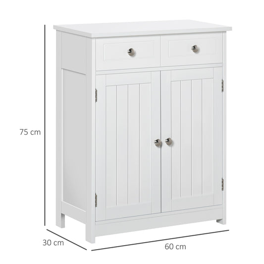kleankin Bathroom Storage Cabinet Free-Standing Bathroom Cabinet Unit w/ 2 Drawers Cupboard Adjustable Shelf Handles Traditional Style 75x60cm White