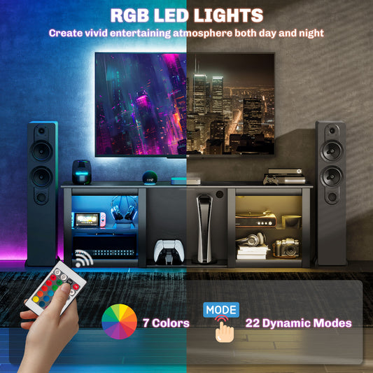 160cm TV Unit w/ LED Lights for 65" TV Modern TV Stand Cabinet Black