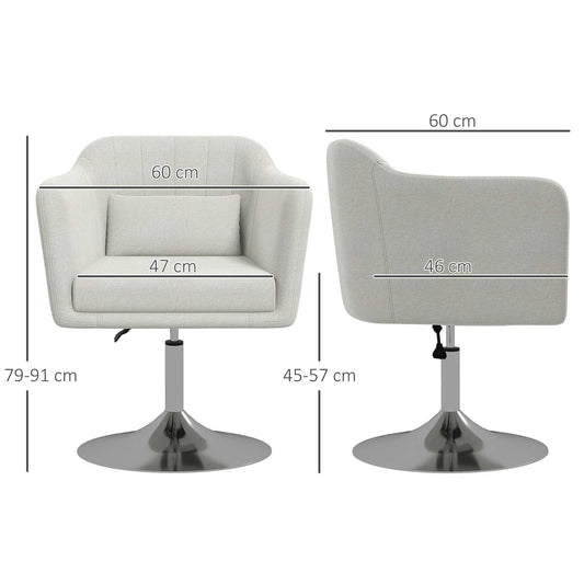 Stylish Retro Linen Swivel Tub Chair Steel Frame Cushion Seat Cream Whit