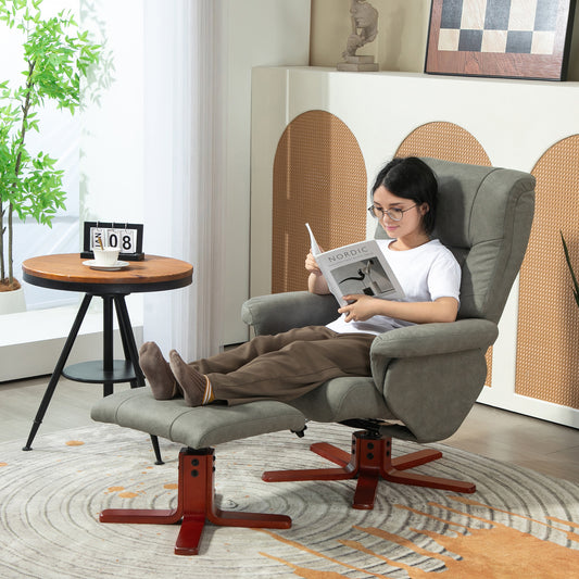 PU Leather Armchair and Footrest Swivel Recliner w/ Ottoman Grey