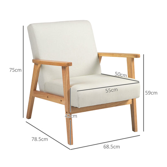 Modern Fabric Accent Chair w/ Rubber Wood Legs Padded Cushion Cream