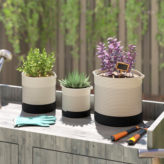 Plant Pots Handwoven Cotton Set of 3 White
