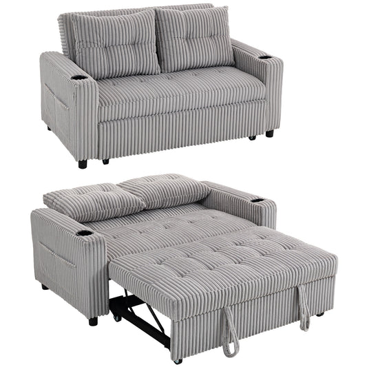 2 Seater Sofa Bed, Click Clack Pull Out Bed Settee, Light Grey
