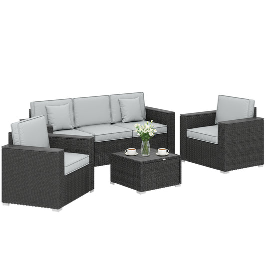 5 PCs Rattan Garden Furniture Set with Glass Coffee Table Dark Grey