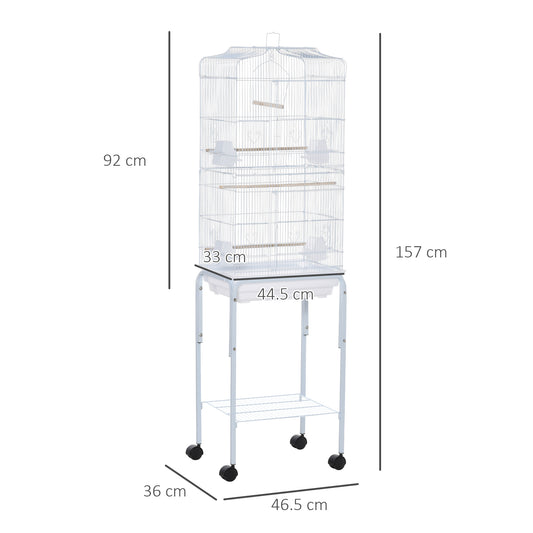 Bird Cage Budgie Cages for Finch Canary Parakeet with Stand Wheels Slide-out Tray Accessories Storage Shelf, White 46.5 x 36 x 157 cm