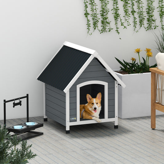Wooden Dog House w/ Porch, Water-resistant Roof, for S M Dogs, Grey