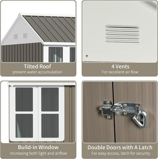 9 x 6FT Garden Metal Storage Shed Outdoor Storage Shed with Foundation Ventilation & Doors, Brown