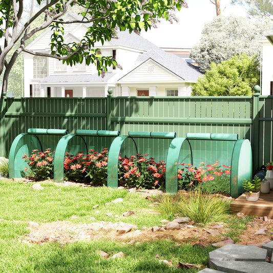 Tunnel Greenhouse Steel Frame for Garden w/ Zipper Doors, Green