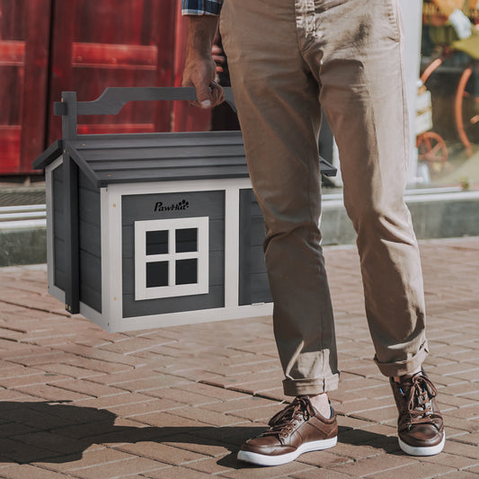 Indoor Rabbit Hutch, Portable Small Animal House Outdoor with Top Handle, Openable Roof - Grey