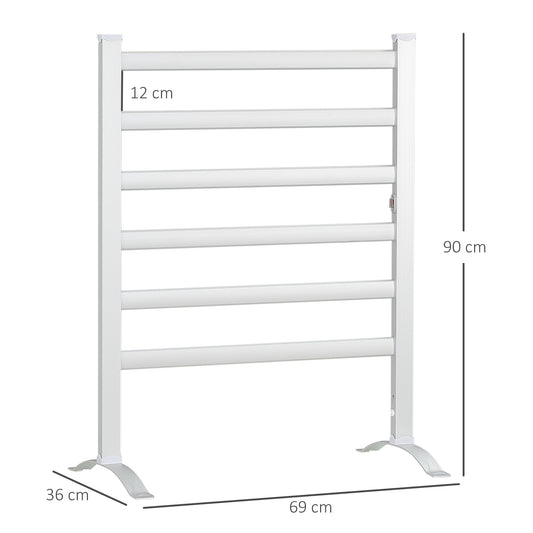 Electric Towel Warmer, 6 Bar Aluminum Heated Towel Rail, Wall Mounted & Free Standing Towel Drying Rack for Bathroom, Plug-in, Silver
