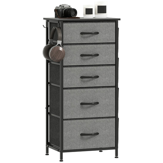 Fabric Chest of Drawers, 5 Drawer Dresser for Bedroom, Charcoal Grey