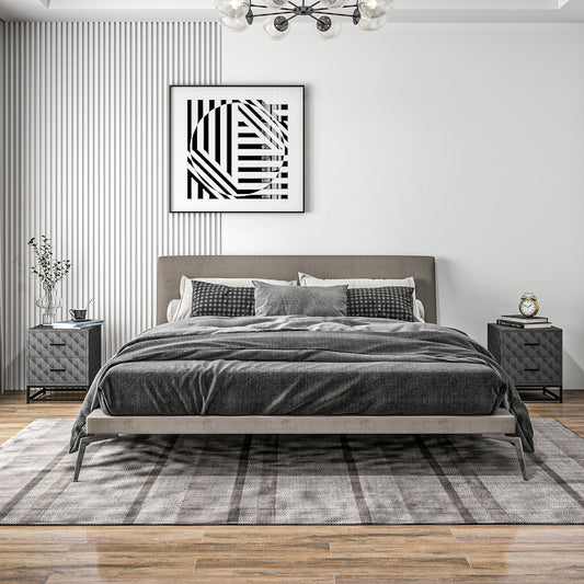 Bedside Table Set of 2, Nightstand with 2 Drawers, Steel Legs, Grey