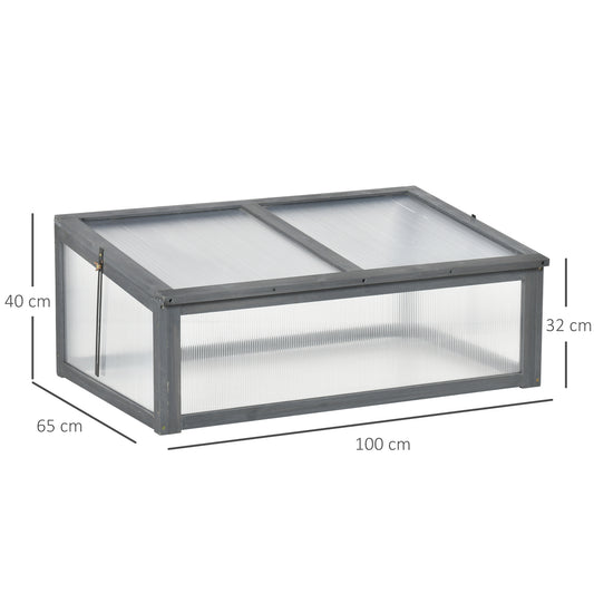 Wooden Cold Frame Greenhouse Garden Polycarbonate Grow House with Openable Top for Flowers, Vegetables, Plants, 90 x 52 x 50cm, Grey