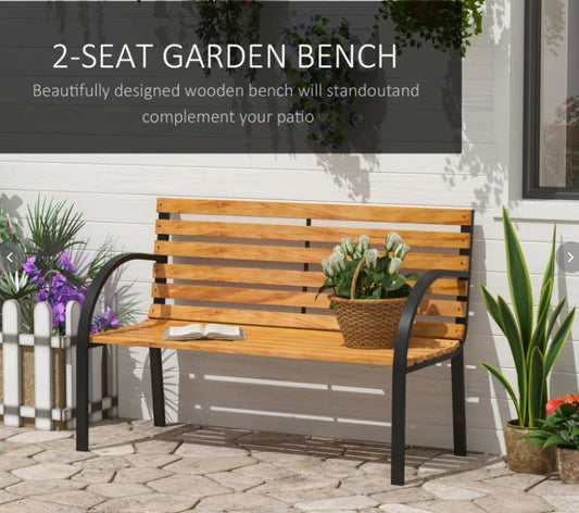Wooden Garden Bench Park Bench 2 Seater Love Chair Outdoor Patio Porch Furniture w/ Sturdy Metal Frame