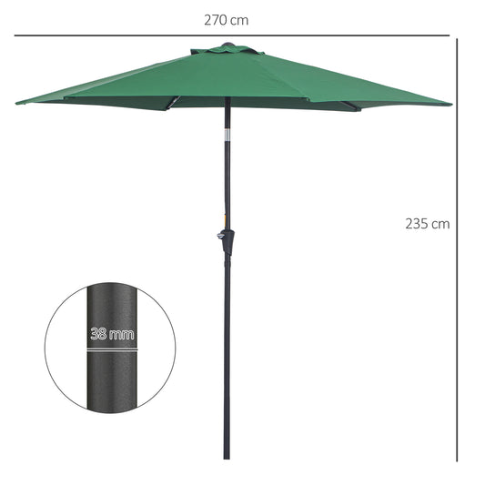 Outsunny 2.7M Garden Parasol Umbrella with Tilt and Crank, Outdoor Sun Parasol Sunshade Shelter with Aluminium Frame, Green