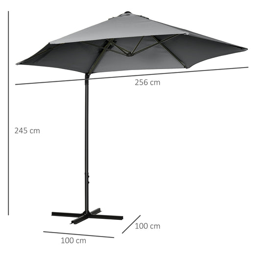 Outsunny 2m Half Parasol Market Umbrella Garden Balcony Parasol with Crank Handle, Cross Base, Double-Sided Canopy, Grey