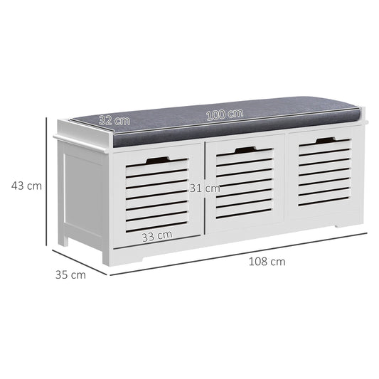 3-Door Shoe Storage Bench Cushion Seat Slatted Doors Elevated Base White