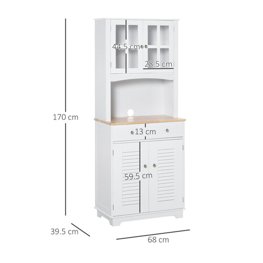 Modern Kitchen Cupboard, Louvered Kitchen Storage Cabinet with Framed Glass Doors and 2 Drawers, White