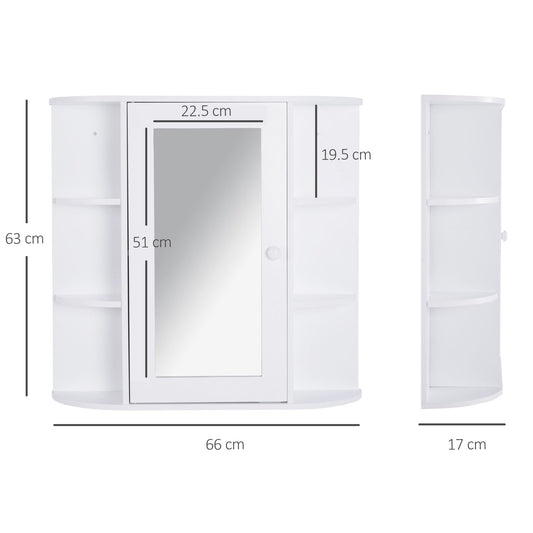Bathroom Mirror Cabinet, Wall Mounted Storage Cupboard with Mirror Single Door Storage Organizer 2-tier Inner Shelves, White