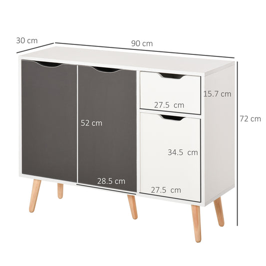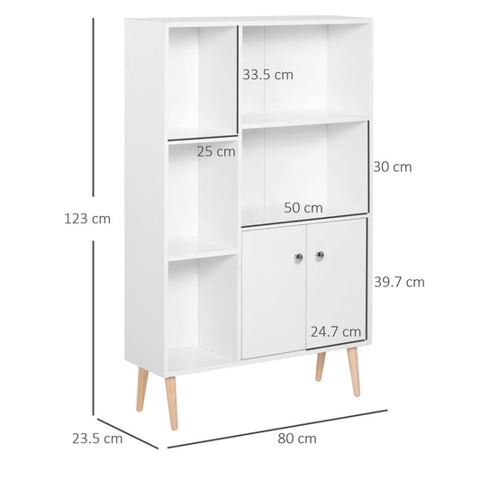 Sideboard Bookshelf Free Standing Bookcase Shelves Unit Display Storage Cabinet Wooden Leg w/ Two Doors White