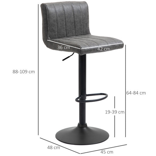 Set of 2 Adjustable Height Bar Chairs with Footrest, Bar Stools Set of 2 for Home Dining Areas, PU Leather, Gas Lift, Grey