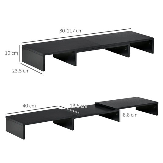 Dual Monitor Stand Riser with Adjustable Length and Angle, Screen Riser for Laptop, Computer, PC, Printer, TV, Black