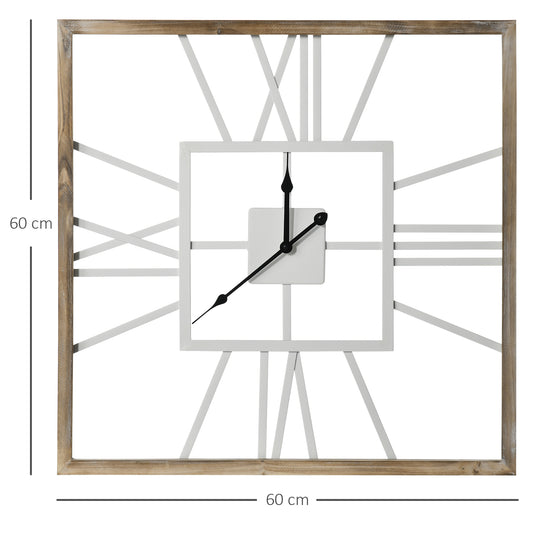 Vintage Large Wall Clock with Roman Numerals, 60cm/24 Inch Silent Non Ticking Metal Wood Clocks for Living Room Kitchen, Distressed White