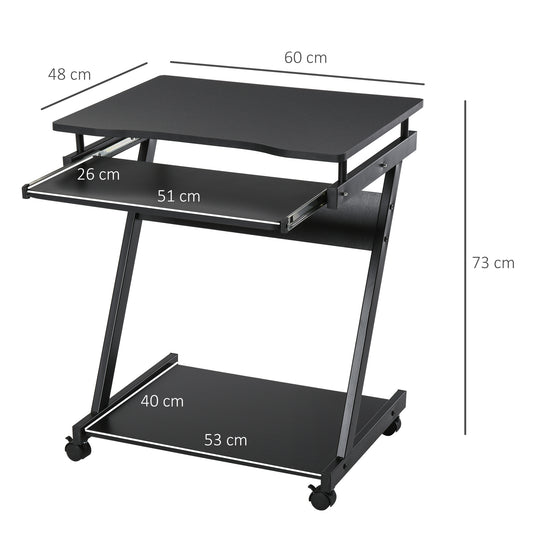 Movable Compact Small Computer PC Desk with 4 Moving Wheels Sliding Keyboard Tray Home Office Gaming Study Workstation White