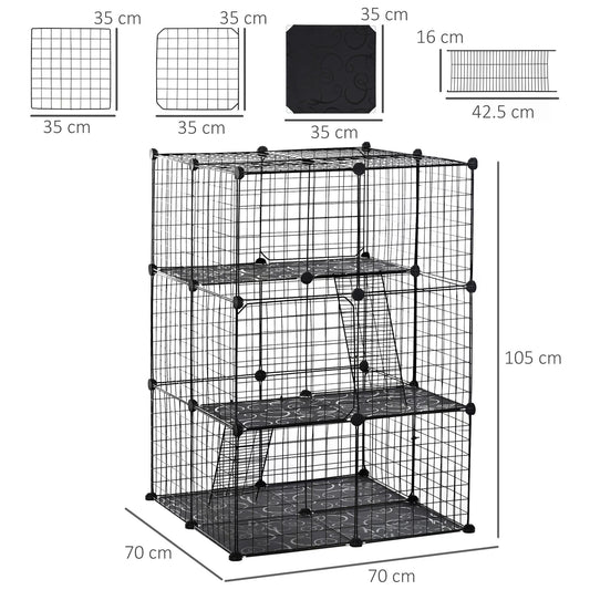 Pet Playpen DIY Small Animal Cage Enclosure Metal Wire Fence 39 Panels with 3 Doors 2 Ramps for Kitten Bunny Chinchilla Pet Mink Black