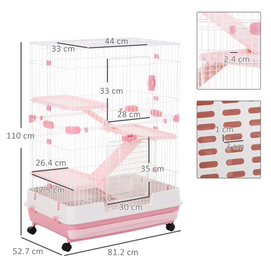 4-Level Small Animal Cage, Indoor Bunny House, for Ferrets, Chinchillas w/ Wheels, Slide-Out Tray, Pink, 81 x 52.5 x 114 cm