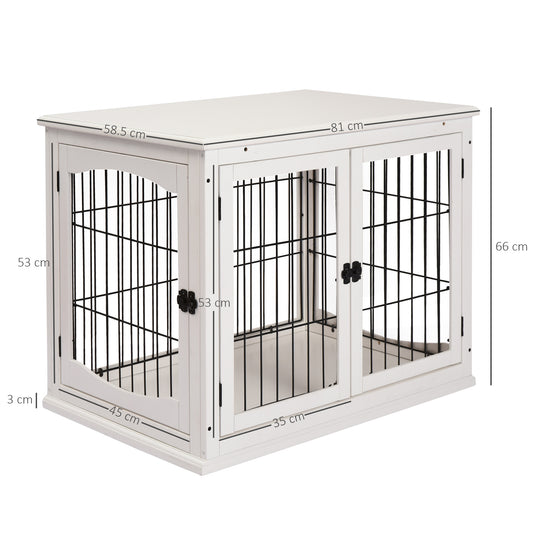 Dog Crate, Furniture Style Puppy Cage End Table, Pet Kennel House with 3 Doors for Small Dog, White 81 x 58.5 x 66 cm