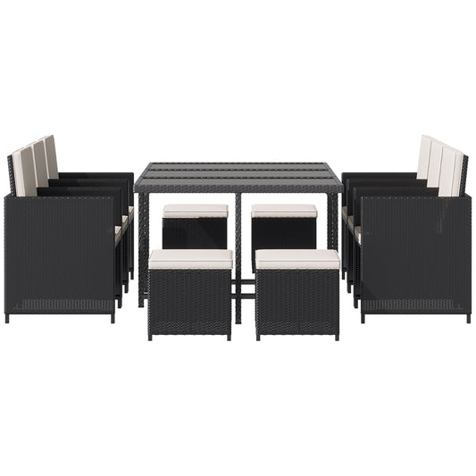 8-Seater Garden Rattan Furniture Rattan Corner Dining Set Outdoor Wicker Conservatory Furniture Lawn Patio Coffee Table Foot Stool, Black