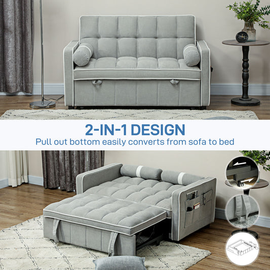 2 Seater Sofa Bed Convertible Bed Settee with Cushions, Pockets, Grey